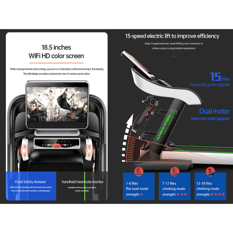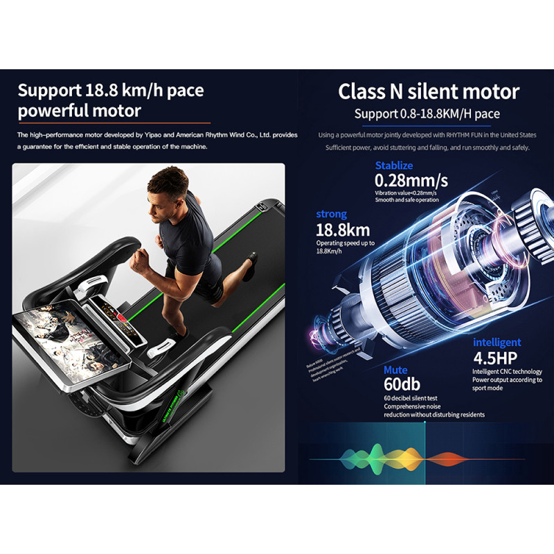 This treadmill can download the YIFIT app for iOS and Android devices for free, via Bluetooth connection. Application control not only makes boring workouts an exciting fitness class, but it also helps to track workout data more.